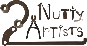 Our sculptures are handcrafted using a mixture of metals that 2 Nutty Artists, their families and friends collect along the sides of the roads. We are constantly amazed at the uniqueness of the pieces that are found. Most people hate potholes, but for us, they provide an unending source of supplies!